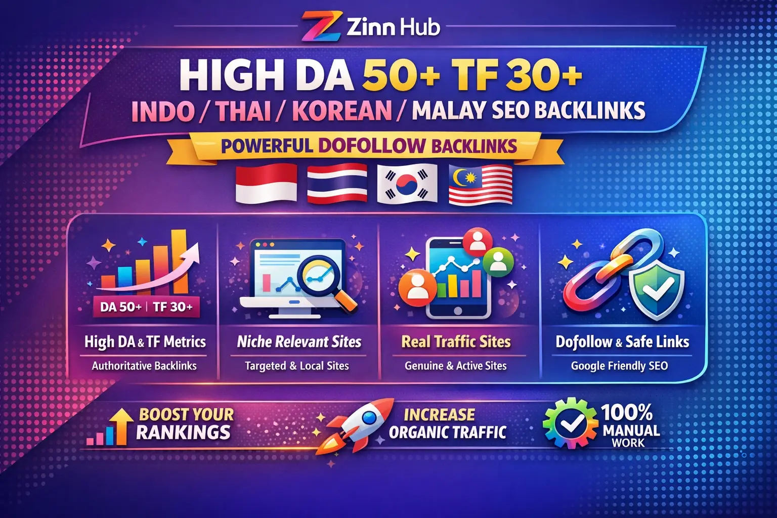 Welcome to my Zinn I will do high DA 50 TF 30 plus Indo Thai Korean Malay SEO dofollow backlinks