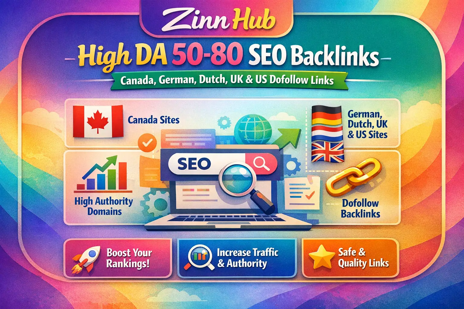 I will do high DA 60 to 80 Canada, Germany, Netherlands, UK and US SEO dofollow backlinks link building
