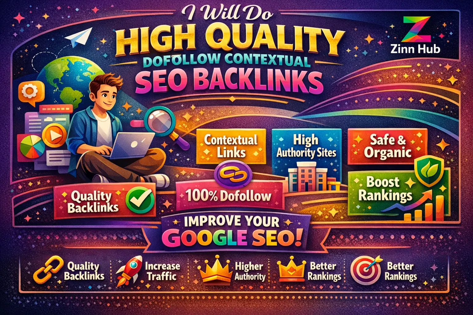 I will provide you with premium SEO backlinks from high DA websites to boost your Google rankings.