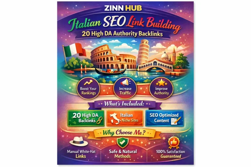 Zinn Digital ™ provides **high DA Italian backlinks** from real, quality websites to help your site gain trust, authority, and long-term ranking power. Our authority link building strategy is 100% manual, safe, and Google-friendly—perfect for any niche targeting the Italian market or needing diverse international links.