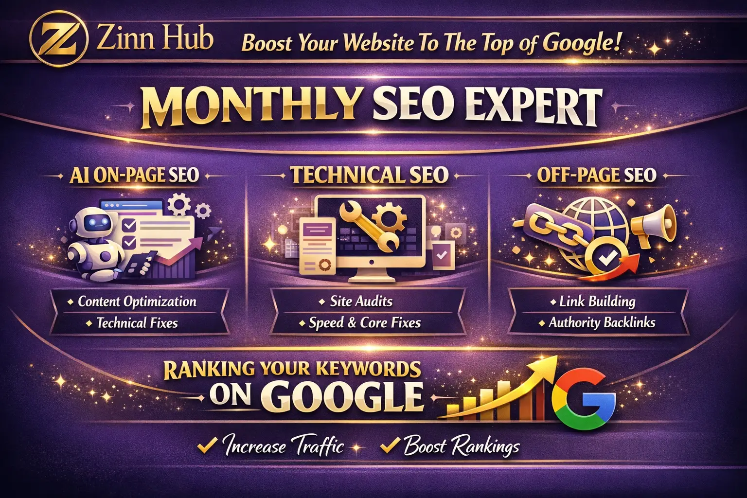 Based in London, England, Zinn Digital ™ delivers professional SEO services through Zinn Hub. Click on the ORDER NOW button and let's get started.
