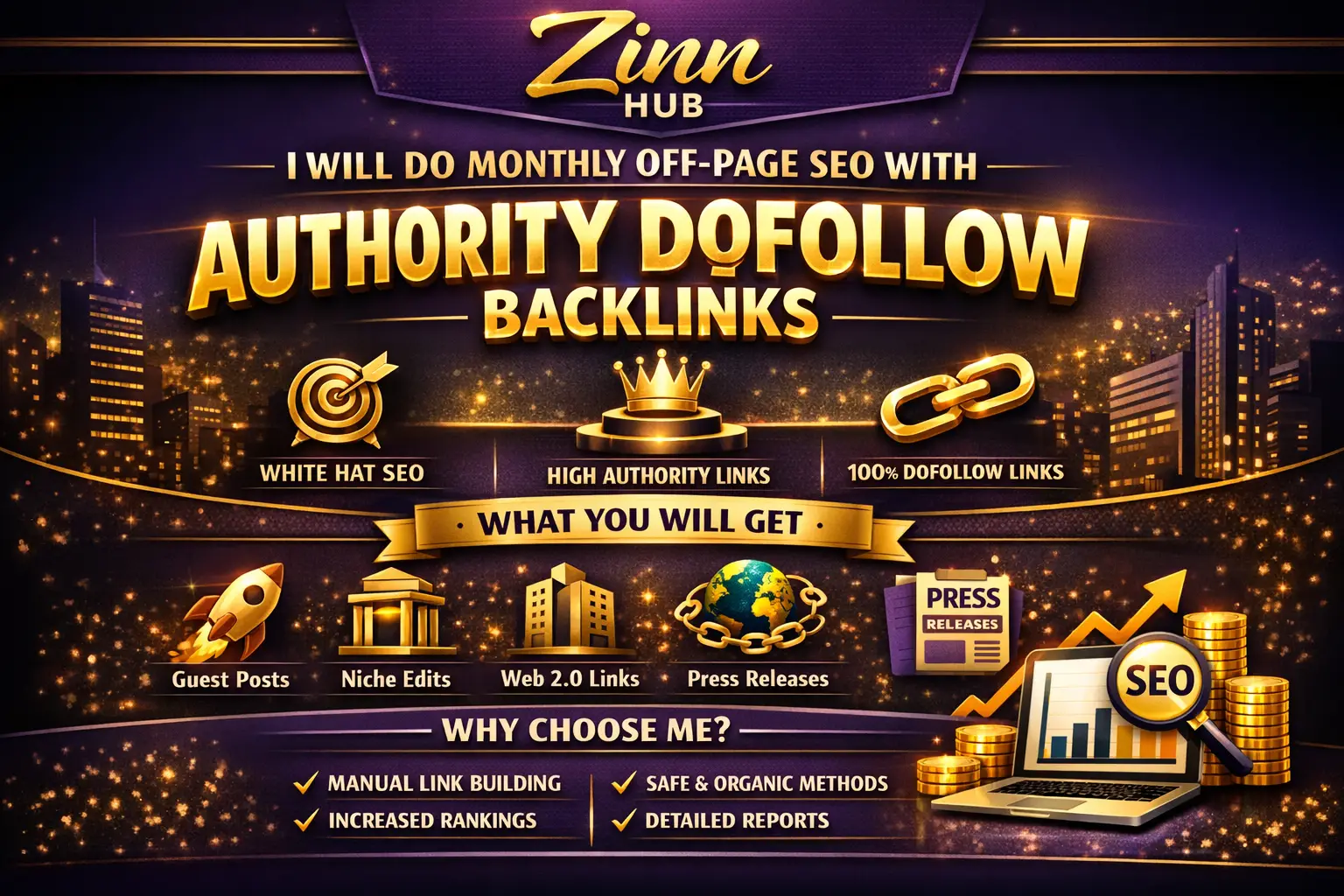 Are you looking for a professional Monthly Off Page SEO service to improve your website authority, rankings, and organic traffic? You've come to the right place! Zinn Digital ™ will provide monthly off page SEO backlinks service from authority sites that will help you boost your website authority, improve rankings, and drive organic traffic to your site.