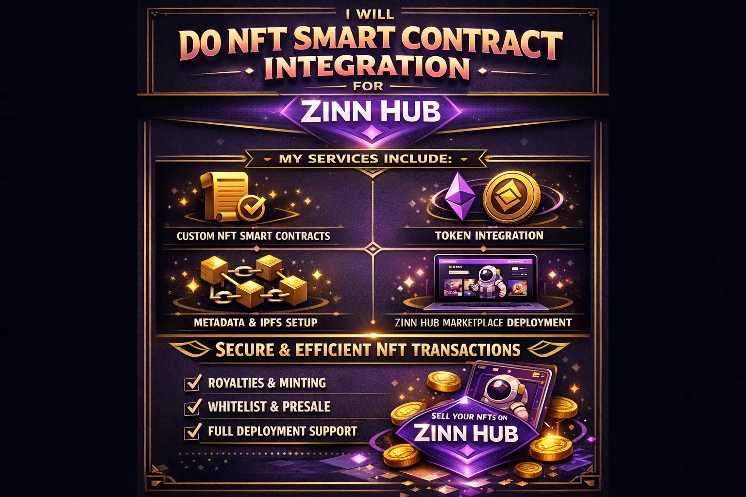 I'm Zinn Digital ™, a blockchain developer. Based in London, England, I have been in the web3 industry for 5 years helping startups and protocols launch and expand their services. I've taken on several large-scale clients and helped them scale their offerings. I am well versed in NFT Marketplace, NFT minting website, token presale, defi protocol, fork, and several unique custom projects.