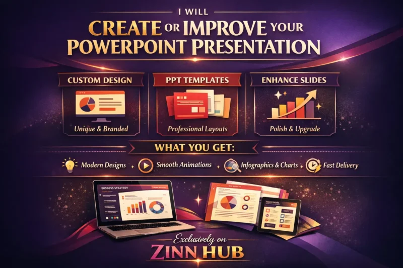 Thanks for exploring our services. We're PowerPoint design specialists based in London, England, focusing on transforming PDF content into modern and Professional PowerPoint Presentations or Investor Pitch Decks for individuals and businesses. With over 4 years of experience and 200+ satisfied clients on and off Zinn Hub, you can rely on Zinn Digital ™'s capabilities to deliver exceptional results.