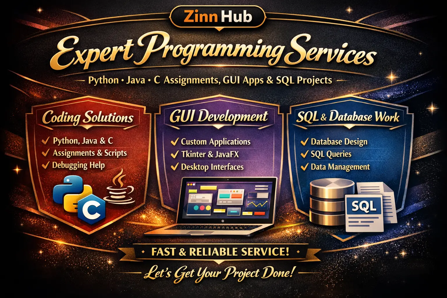 You're in the right place! Zinn Digital ™ is a professional development team based in London, England with 3+ years of experience in: Python - Java - C/C++ ️ - SQL (MySQL, SQLite). We will deliver clean, well-commented, and fully working code for your requirements.