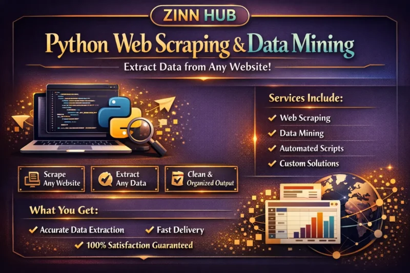 Hello! I'm Zinn Digital ™, a Python developer with years of experience in web scraping, data mining, and data extraction. Based in London, England, I provide fast, professional, and tailored solutions for all your data needs, whether it's from static or dynamic websites, e-commerce platforms, or business directories.
