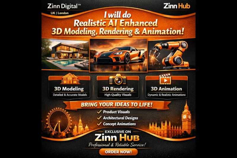 - All visuals are created using AI tools and professional 3D/2D software. The 3 main Zinn images are fully AI-generated.