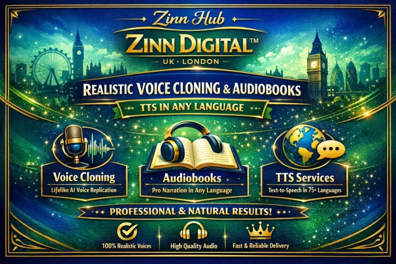 ️Want your voice transformed into a realistic AI clone for audiobooks, narrations, or text-to-speech? Zinn Digital ™ creates professional AI voice clones in any language using ElevenLabs, Minimax or Custom Tool delivering lifelike, natural-sounding results.