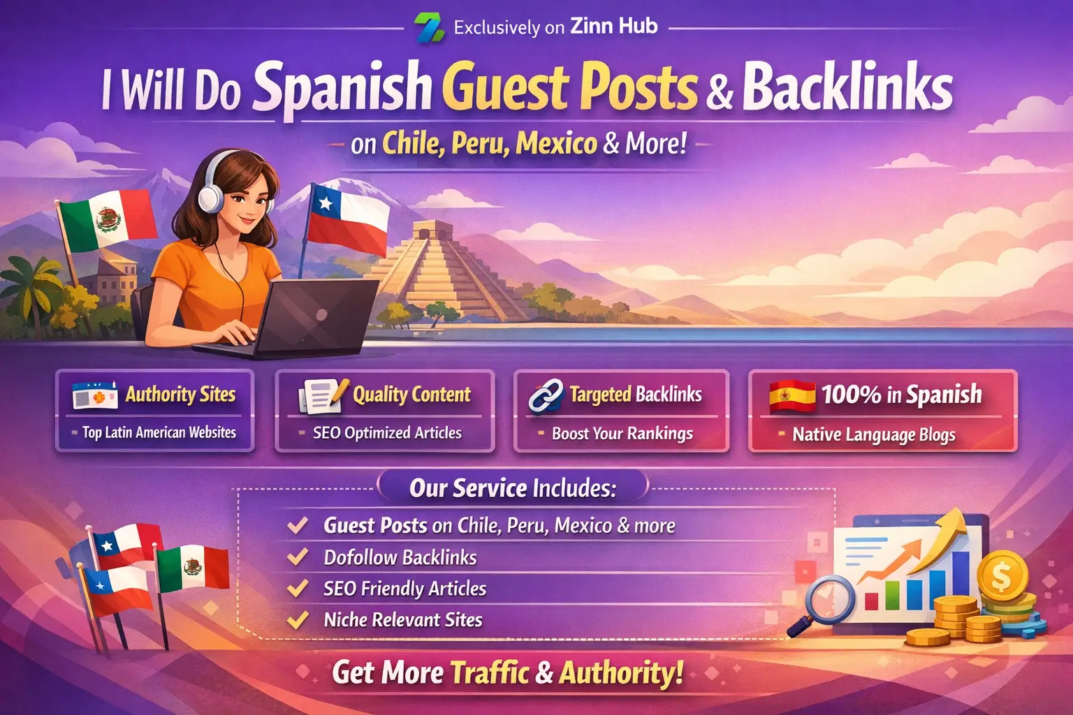This Zinn offers special deals on **Spanish Backlinks** or **Spanish Guest Posts**, targeting countries such as **Spain, Mexico, Argentina, Colombia, Peru, Chile, Panama, Costa Rica, and Ecuador**.
