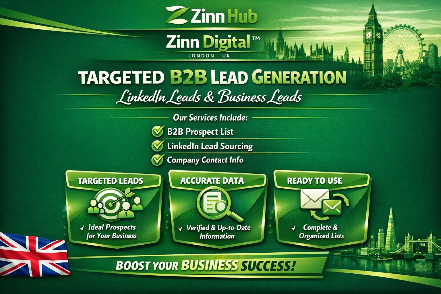 Our team, based in London, England, utilises LinkedIn Sales Navigator, professional networking sites, and popular directory platforms such as ZoomInfo, CrunchBase, Apollo, Yelp, and Yellow Pages to compile your targeted B2B lead generation lists.