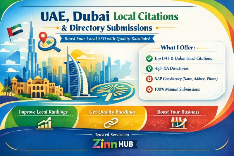 I will manually add your business to top-tier, high PA, DA, PR **UAE Local Citations Backlinks with Worldwide Citations** local directory backlinks through 100% manual work. Looking to elevate your business ranking in your local area? You absolutely need local directory listings for your business, and these Local Directories will deliver positive SEO results through comprehensive Local Citations for the UAE.