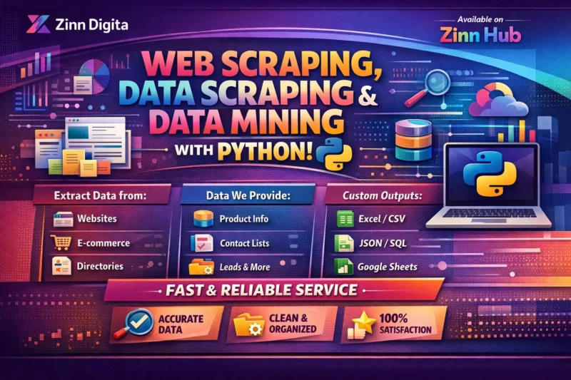 My Name is Zinn Digital ™ and I am a professional web developer with extensive experience in Python Web Scraping and Data Mining / Data Scraping & Data Collection, based in London, England.