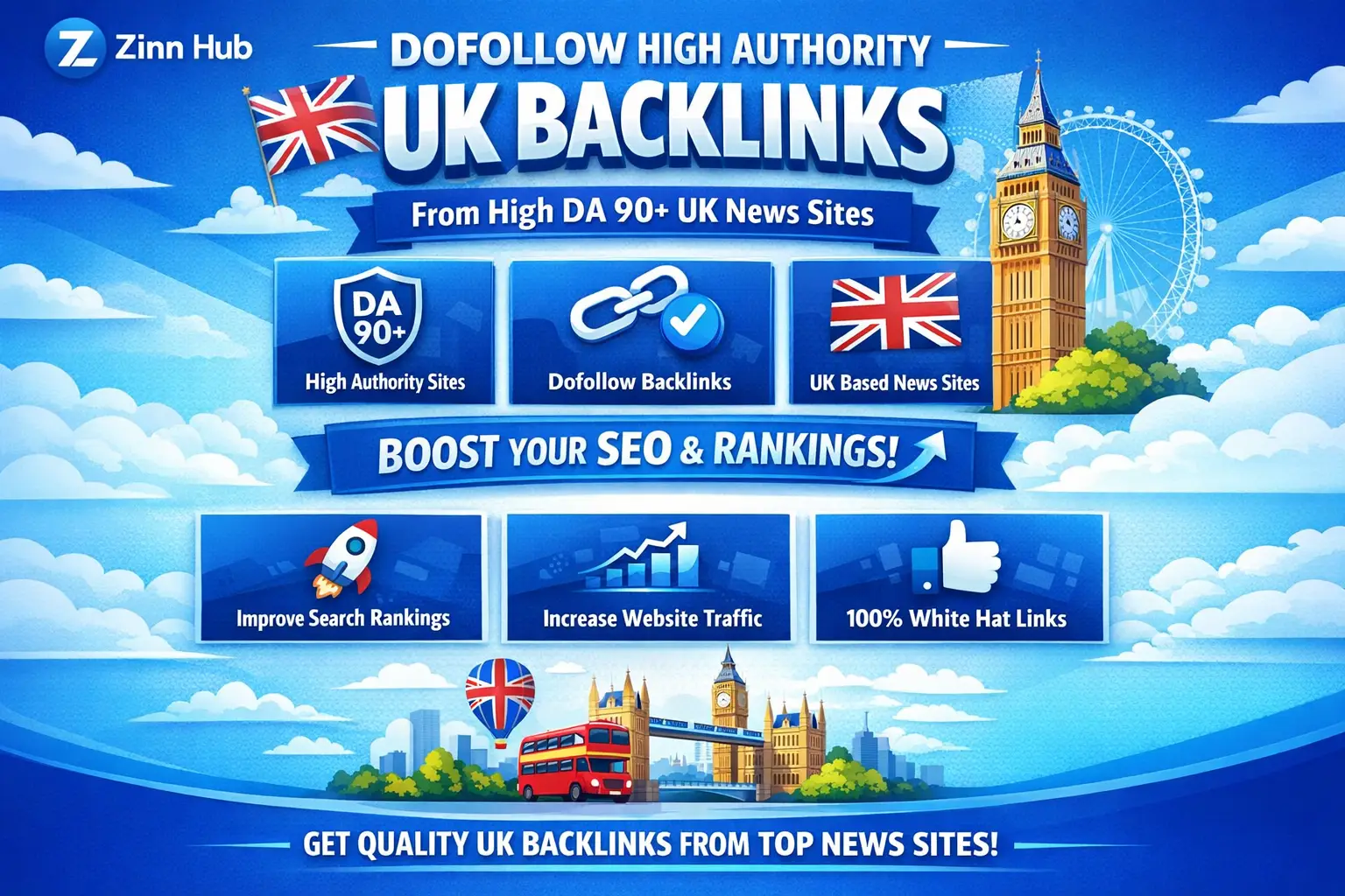 If you're interested in United Kingdom UK Backlinks service from top News high DA 90+ Authority sites, based in London, England, please do contact Zinn Digital ™ today.