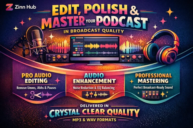 I clean up your audio by removing noise, mouth clicks, filler words and awkward pauses. Then I balance levels, apply EQ, compression and loudness matching (e.g. -16 LUFS) for a smooth, consistent and platform-ready result – polished and professional. Editing detail depends on selected package.