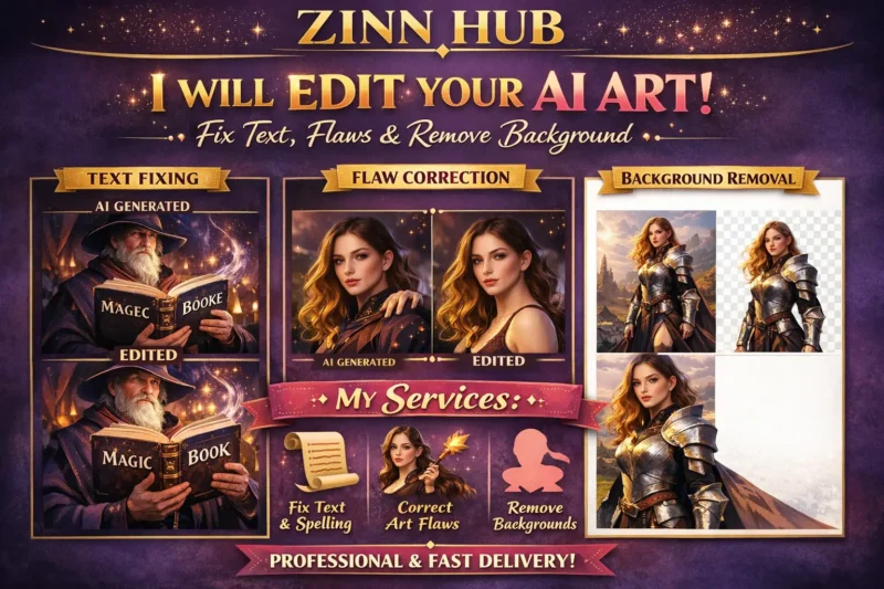 fix text or flaws and enhance your 2 ai art images. | Professional Designer and Developer
