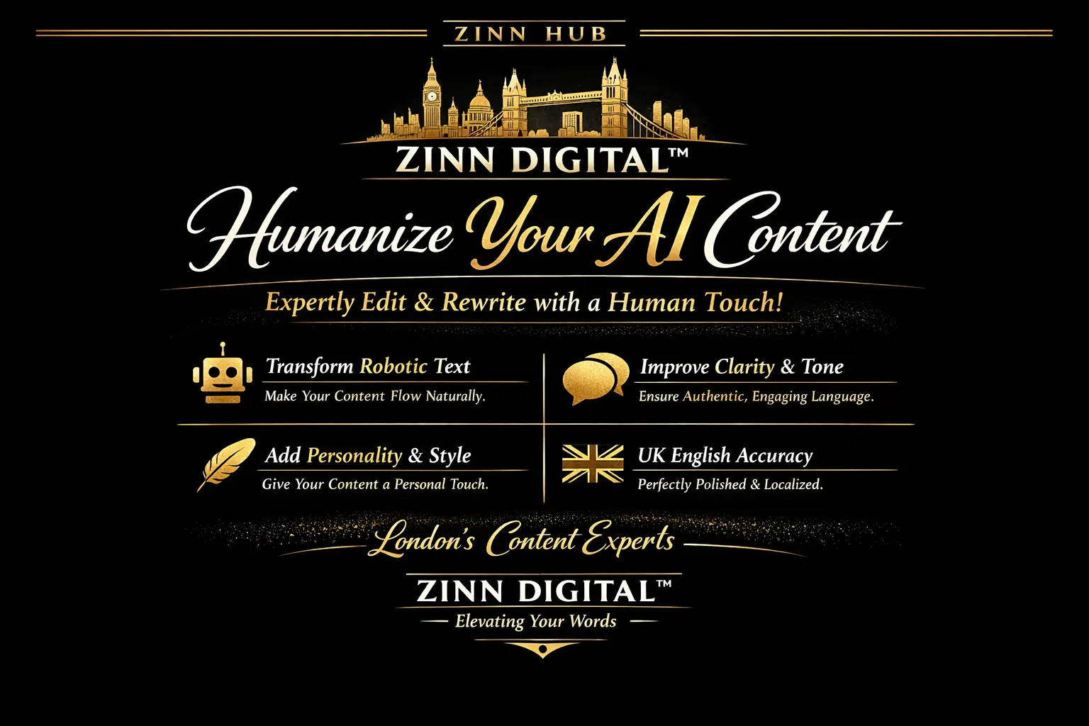 Zinn Digital ™ are master's-level professionals with extensive experience in editing, proofreading, and rewriting content. Based in London, England, our mission as your editors and copywriters is to proofread or rewrite your content to be perfectly polished and ready to use.
