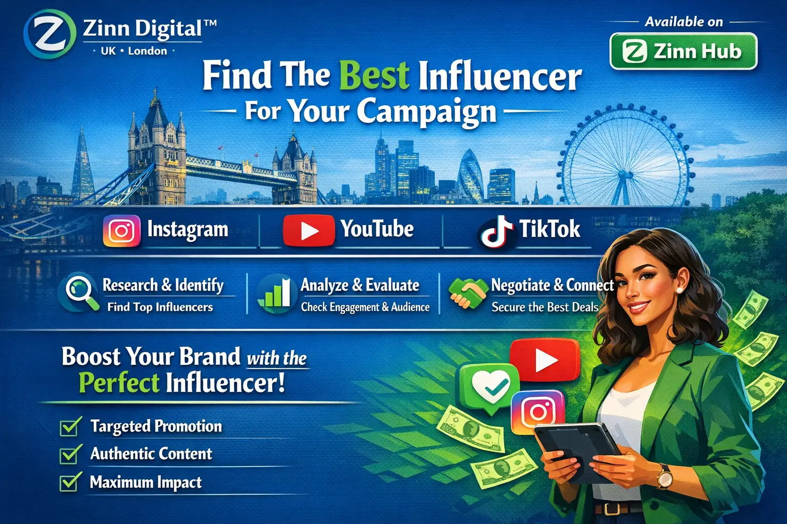 Zinn Digital ™ will find the best influencers for your influencer marketing campaigns so you don't have to. Based in London, England, we've successfully collaborated with over 1,500 small and large businesses, helping them discover the perfect influencers across various platforms to drive their marketing success.