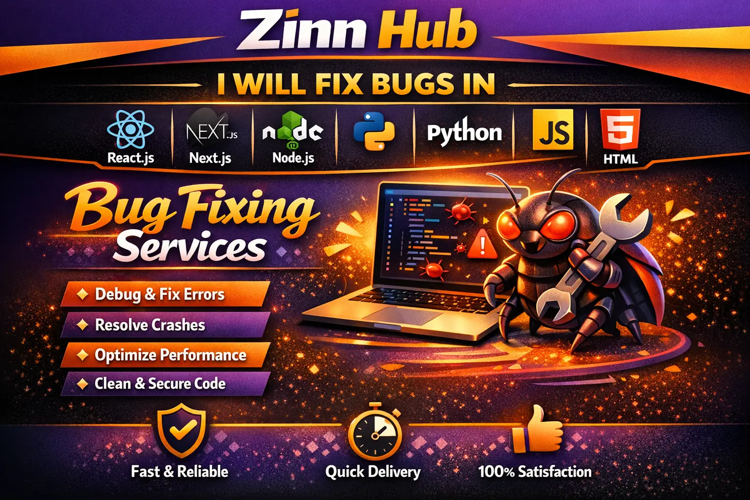 I can fix bugs related to any of the tools and technologies that we have expertise in, including React JS, Backend development, JavaScript, Nodejs, Postgres, MongoDB, and more.