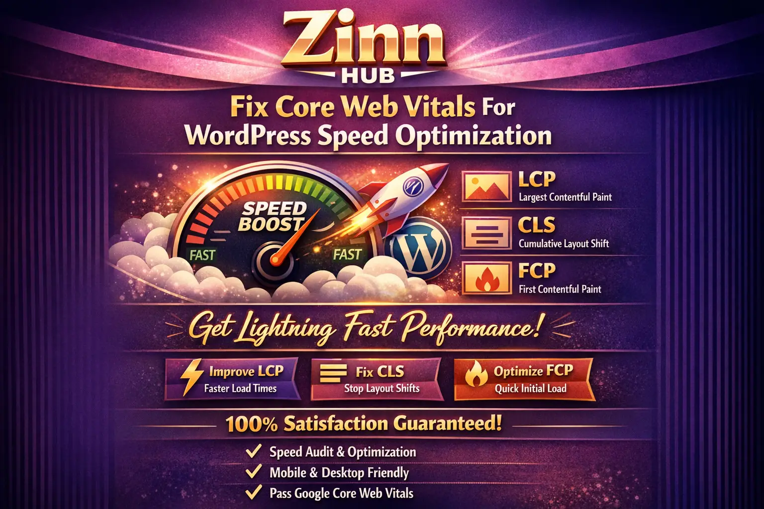 Fix Core Web vitals LCP, INP, CLS optimization, Score 80+ on Desktop | 70 on Mobile | Load time <4s | Speeding up WordPress sites is my addiction to SEO that Wins!