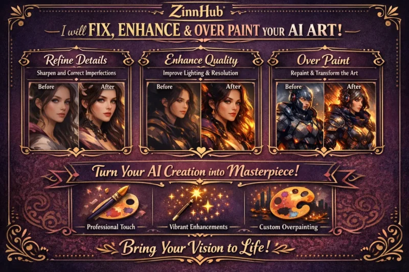 I would be delighted to assist you with artwork generated by AI (such as Midjourney, DALL·E 2) to repair or enhance composition, lighting, colours, anatomy (particularly hands, facial features), etc.