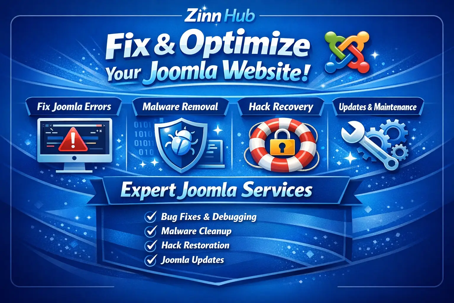 fix errors on joomla website,malware removal, recovery, updates