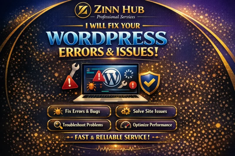 Hello, if you are facing issues related to HTML, CSS, MYSQL, 403 Forbidden Error, 404 Not Found Error, 500 internal server error, critical errors, Error establishing a database connection, blank screen/white screen of death, Published/update failed or any other website-related issues and want to fix these problems, then Zinn Digital ™ is here for you. We will try our best to solve your issues immediately from our London, England headquarters.