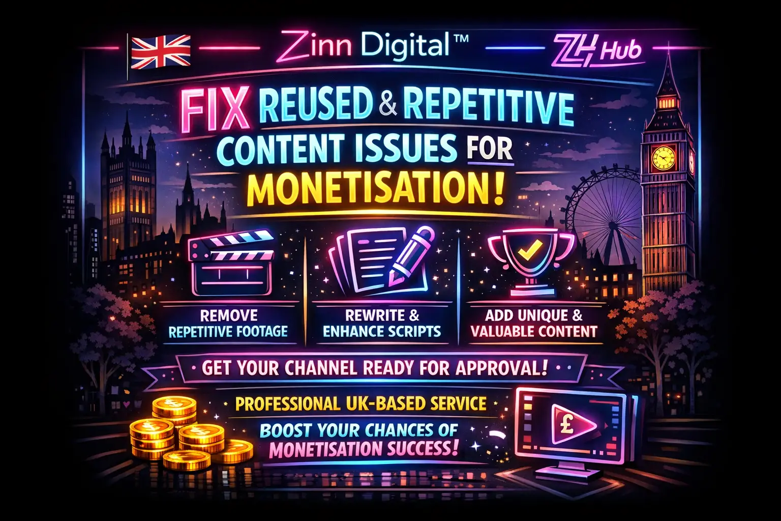 If your YouTube monetisation has been disabled due to reused content or repetitive content, there's no need to worry. We will help resolve any issues regarding your channel monetisation.