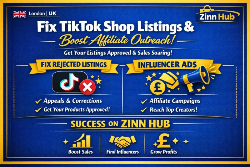 Zinn Digital ™ helps business owners like you resolve TikTok Shop issues swiftly. Whether your product listings are being rejected for policy violations, your products are stuck awaiting TikTok Shop category approval, or you simply need someone to properly set up and manage your TikTok store, we've got it covered. Based in London, England, we don't just fix what's wrong—we help your TikTok Shop scale the right way, with intelligent strategies and proven methods.