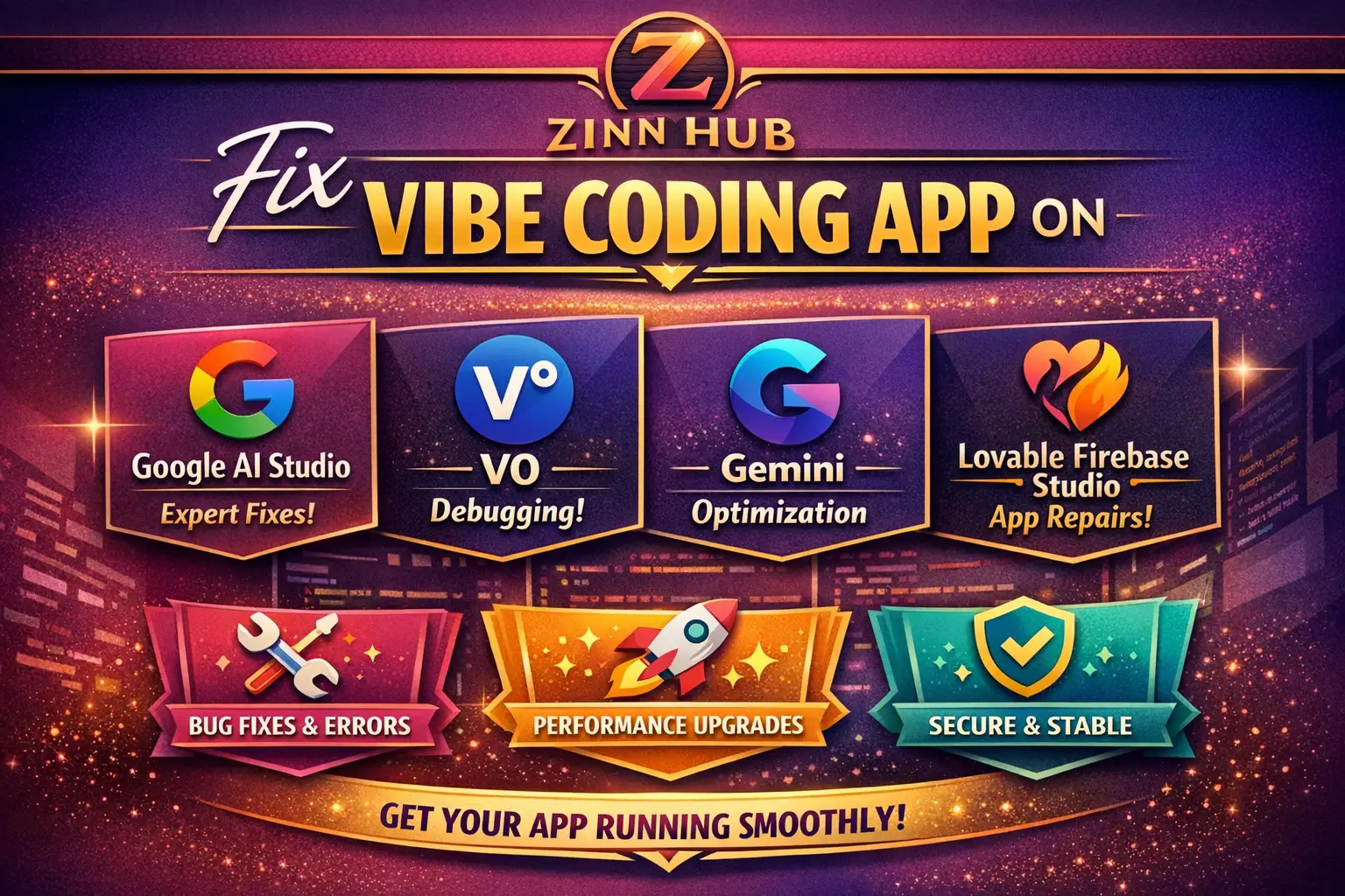 Zinn Digital ™ specialises in fixing vibe coding apps built with Google AI Studio, v0, Gemini, Lovable, and Firebase Studio. Whether your app was AI-generated, no-code, or low-code, we can debug, review, and fix vibe code issues efficiently.