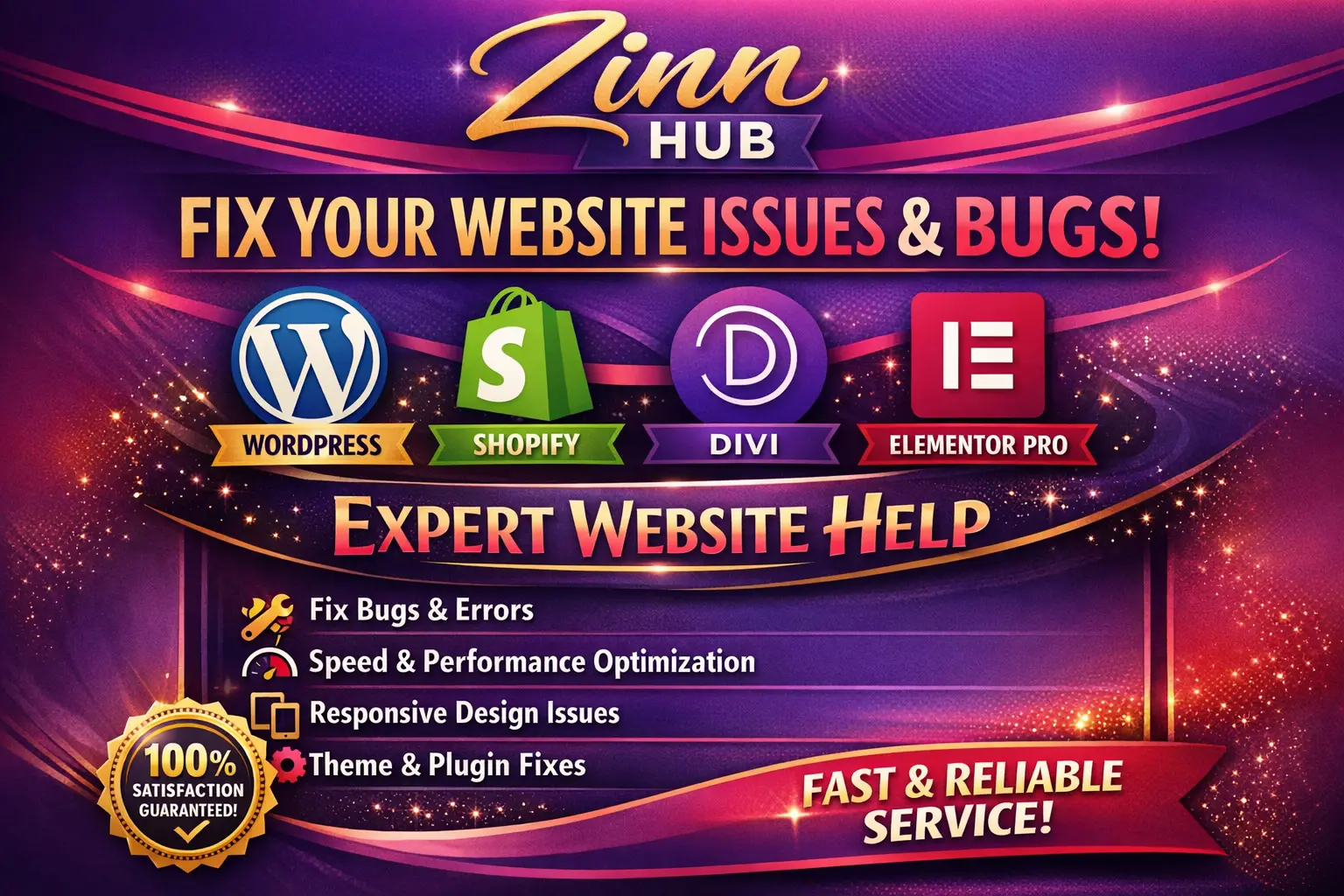 Need expert help to fix issues on your WordPress, Shopify, Divi, or Elementor Pro site? Zinn Digital ™ is here to resolve your website problems quickly and effectively!