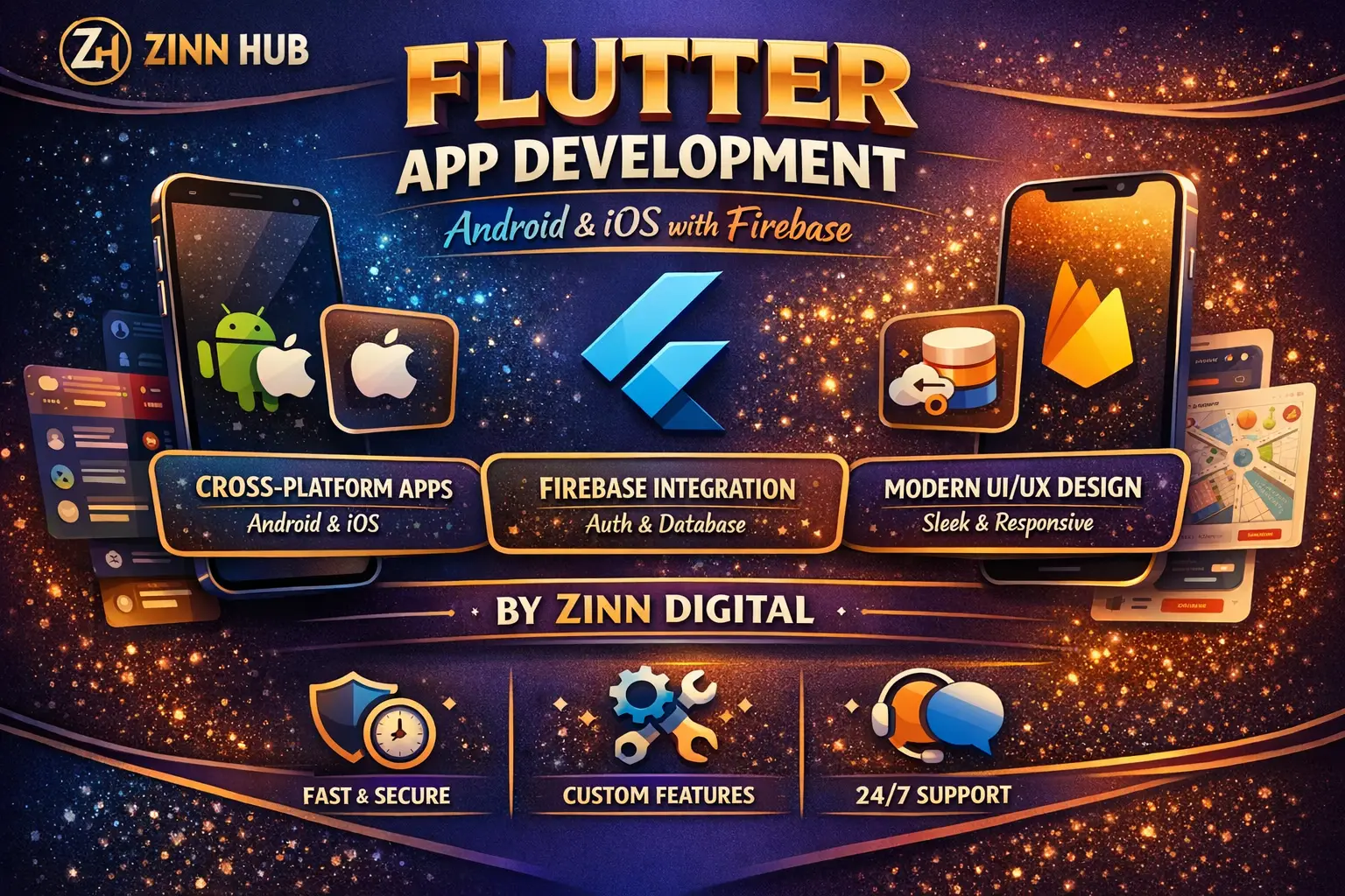 Flutter app development for Android and iOS with Firebase by Zinn Digital ™
