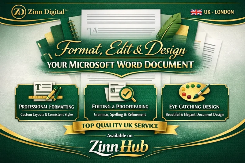 Contact Zinn Digital ™ based in London, England with your document and specific requirements. We'll discuss your needs and agree on the scope and deadline. You'll receive a customised quote based on complexity and length. Once agreed, sit back and relax whilst we work our magic. Review the formatted document, provide feedback, and receive the final polished document.