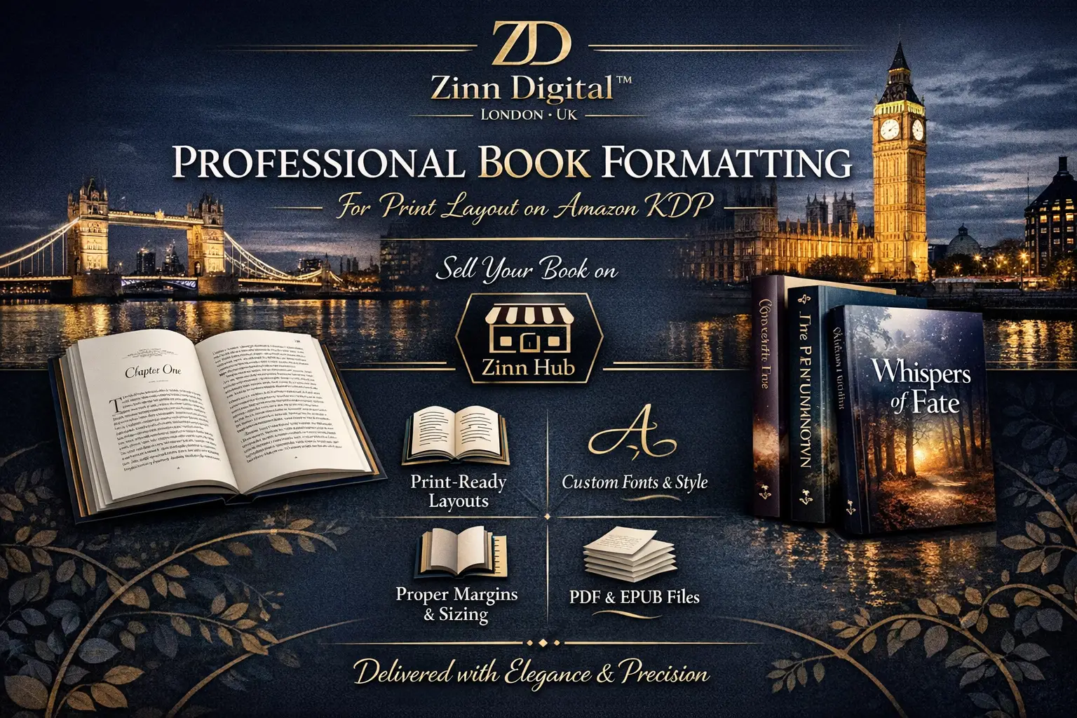 **Hello from Zinn Digital™ in London, England – Your Professional Book Designer with Over 10,000 Successful Publications!**