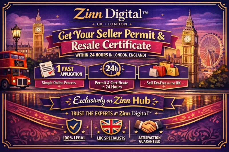 Hello, it's Zinn Digital ™! I am here to help you obtain a Resale Certificate or Seller permit across all US states. Here I will secure the sales tax licence number using your data and your LLC. WHAT IS A SELLER PERMIT AND RESELLER CERTIFICATE? A seller's permit provides a business with authority to make sales within London, England.