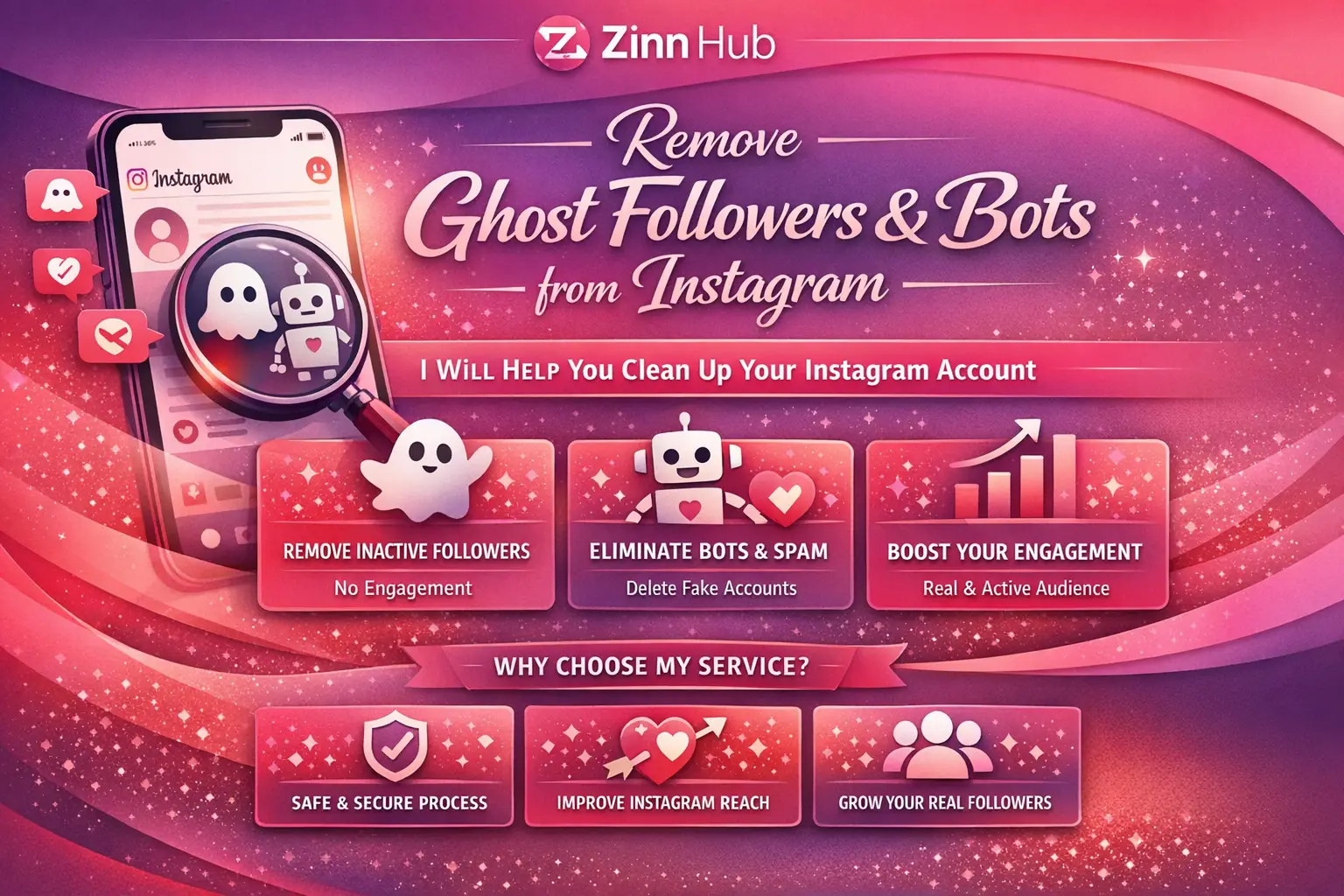 Are fake or inactive followers damaging your social media growth? Zinn Digital ™ will professionally remove ghost, fake, or bot followers from your account to restore genuine engagement and credibility. Our cleaning process is safe, accurate, and effective, helping you connect only with real, active people who matter.