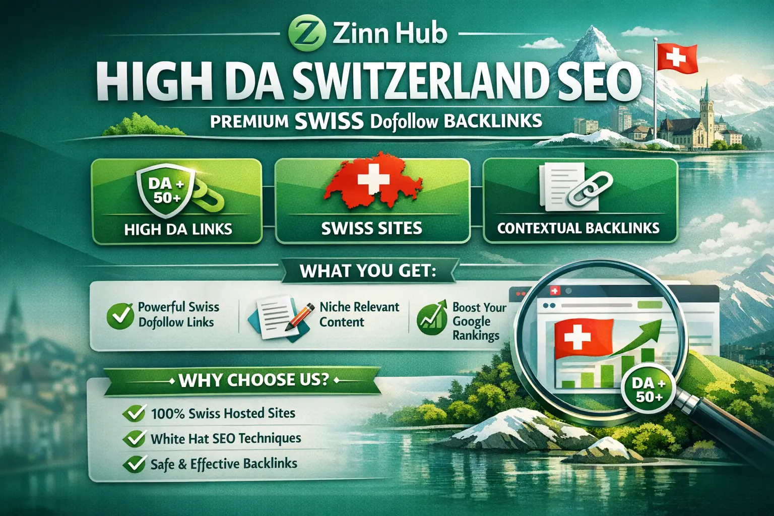 Zinn Digital ™ provides manual Swiss backlinks from high DA Swiss websites with dofollow links placed naturally within relevant content.