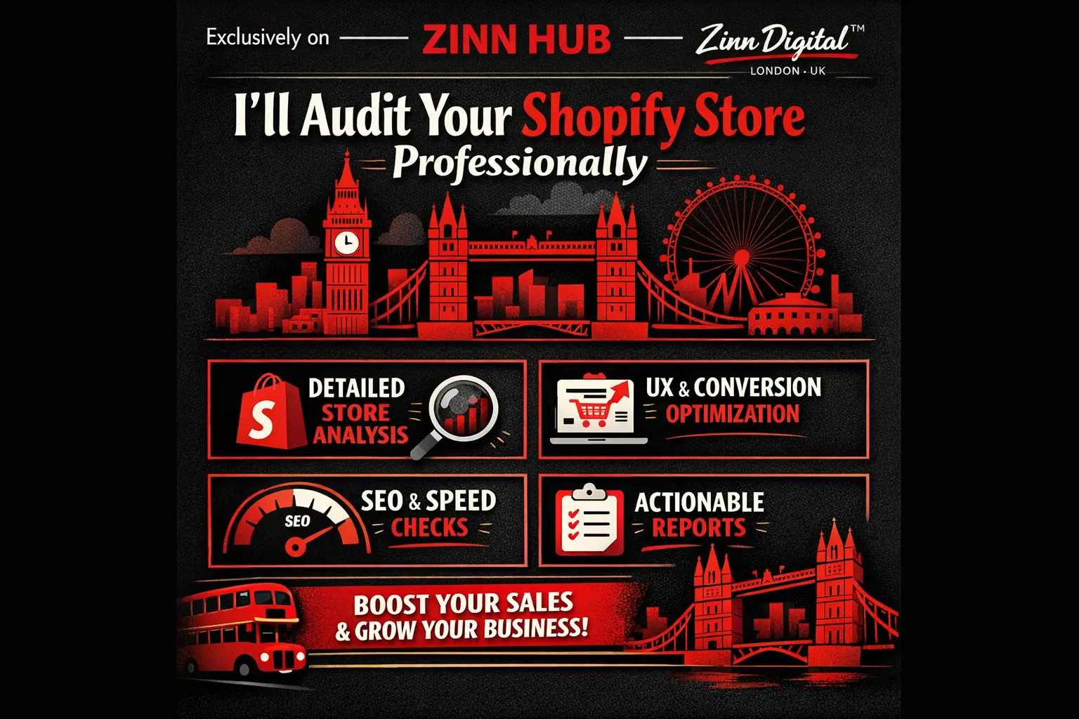 Zinn Digital ™ is a Shopify SEO & CRO expert based in London, England, with years of experience helping eCommerce brands increase organic traffic, improve user experience, and maximise conversions. We'll perform a full Shopify audit to identify SEO errors, UX flaws, and performance issues that prevent your store from ranking and selling.