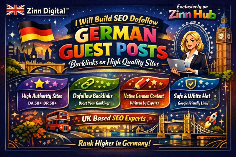 Don't delay any longer—order now from Zinn Digital ™ based in London, England, for our premium German Guest Post Backlinks Services.