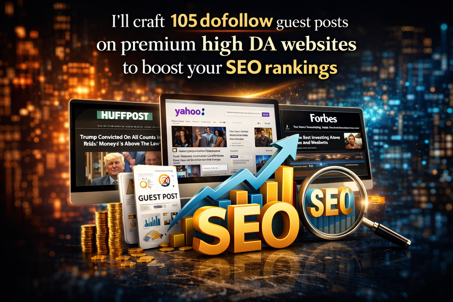 I'll craft 105 dofollow guest posts on premium high DA websites to boost your SEO rankings
