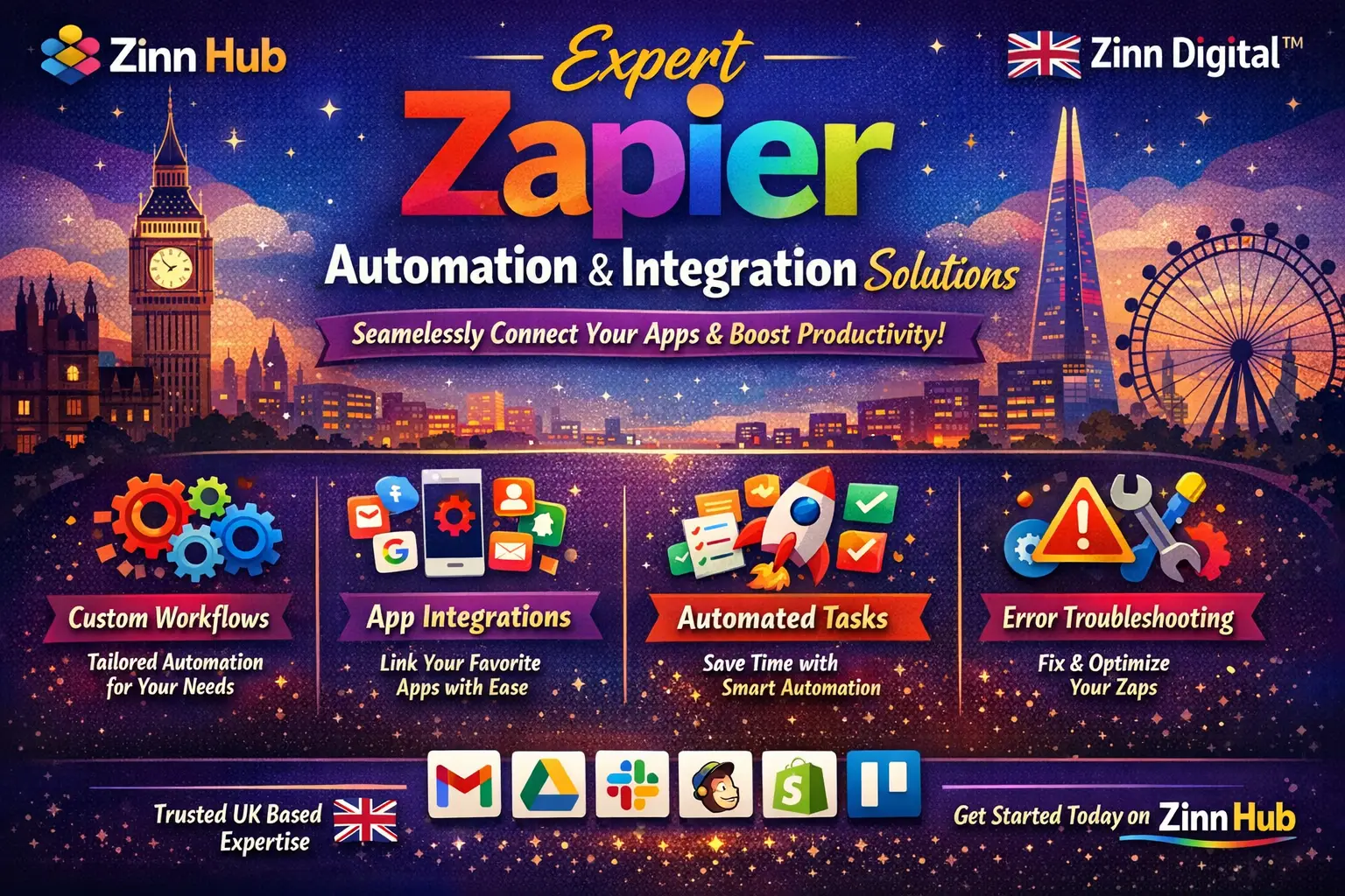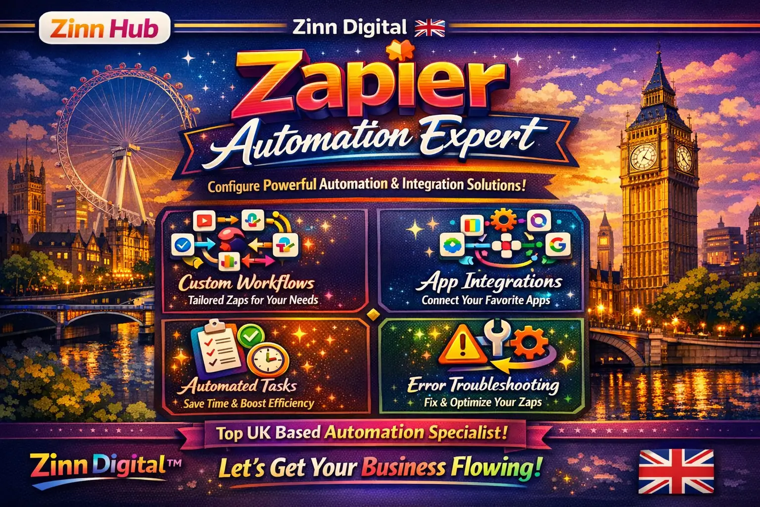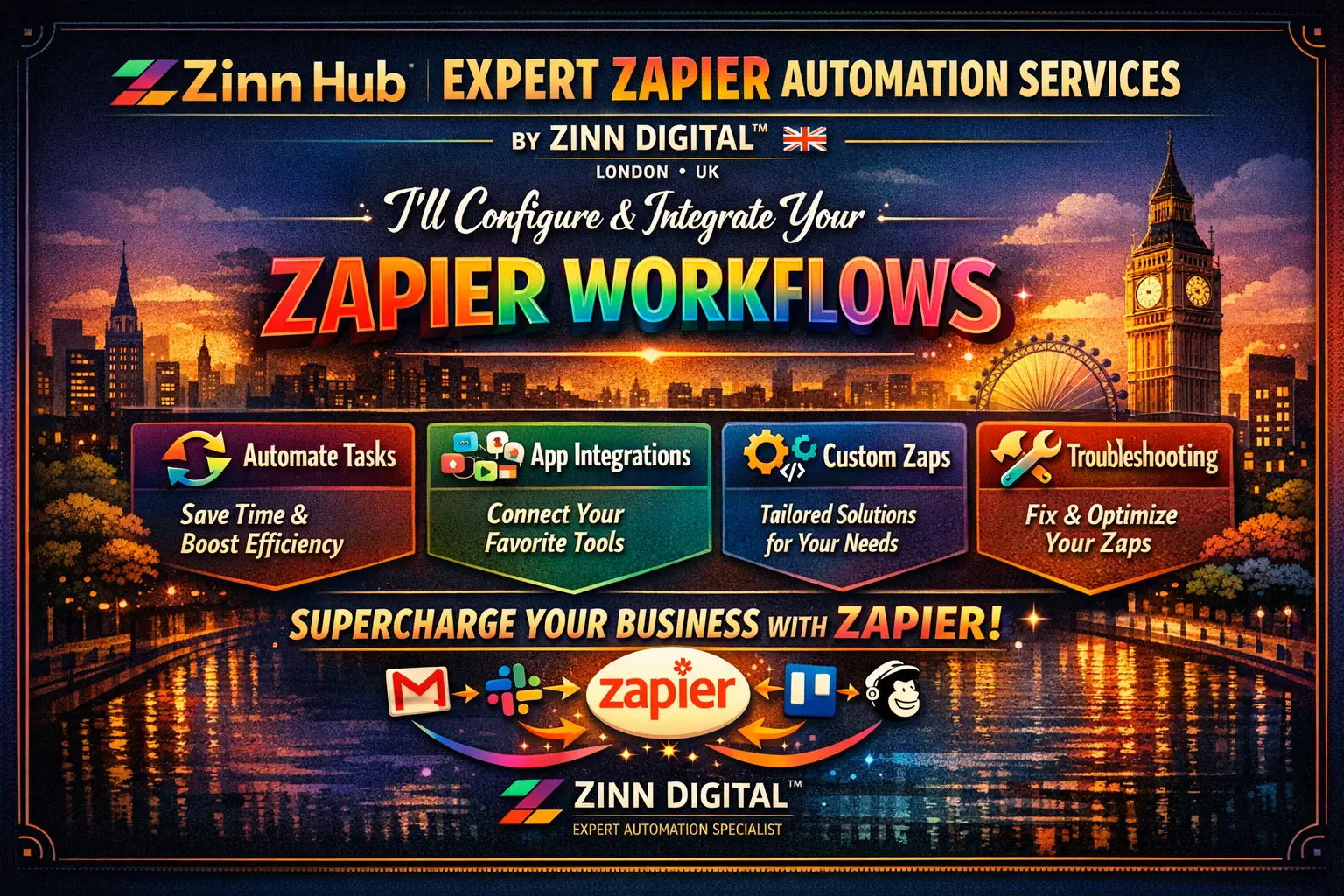 Hi, I'm Zinn Digital ™, a Zapier expert with over 7 years of experience in creating powerful Zapier automation and integrations. Based in London, England, I can help you connect platforms, automate tasks, and streamline your workflow with custom Zaps.