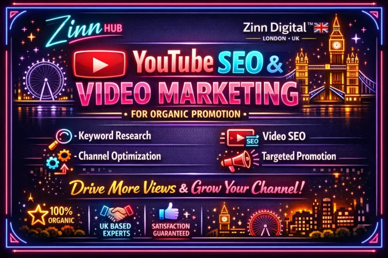 **Zinn Digital ™ specialises in YouTube SEO, YouTube promotion, video marketing, and channel growth.** Based in London, England, we handle everything from strategic keywords and YouTube advertisements to backlinks and comprehensive optimisation strategies.