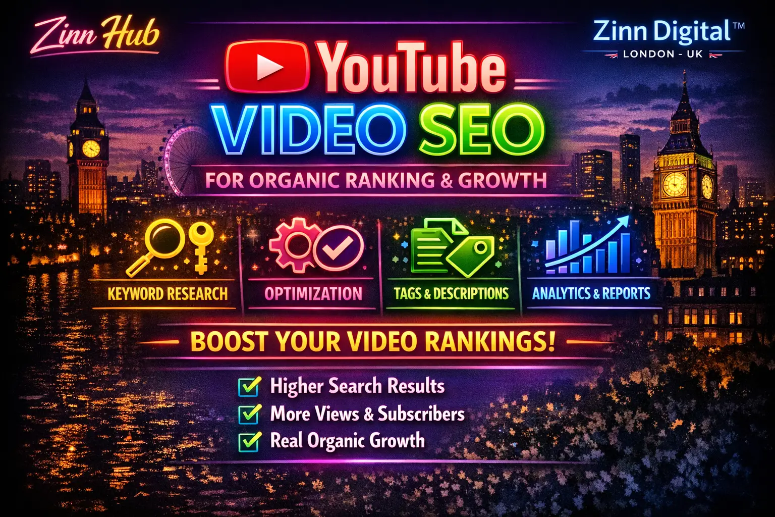 Do you want to grow your YouTube channel with proper SEO? You're in the right place! Zinn Digital ™ specialises in optimising YouTube video SEO to help them rank higher and attract more organic views.
