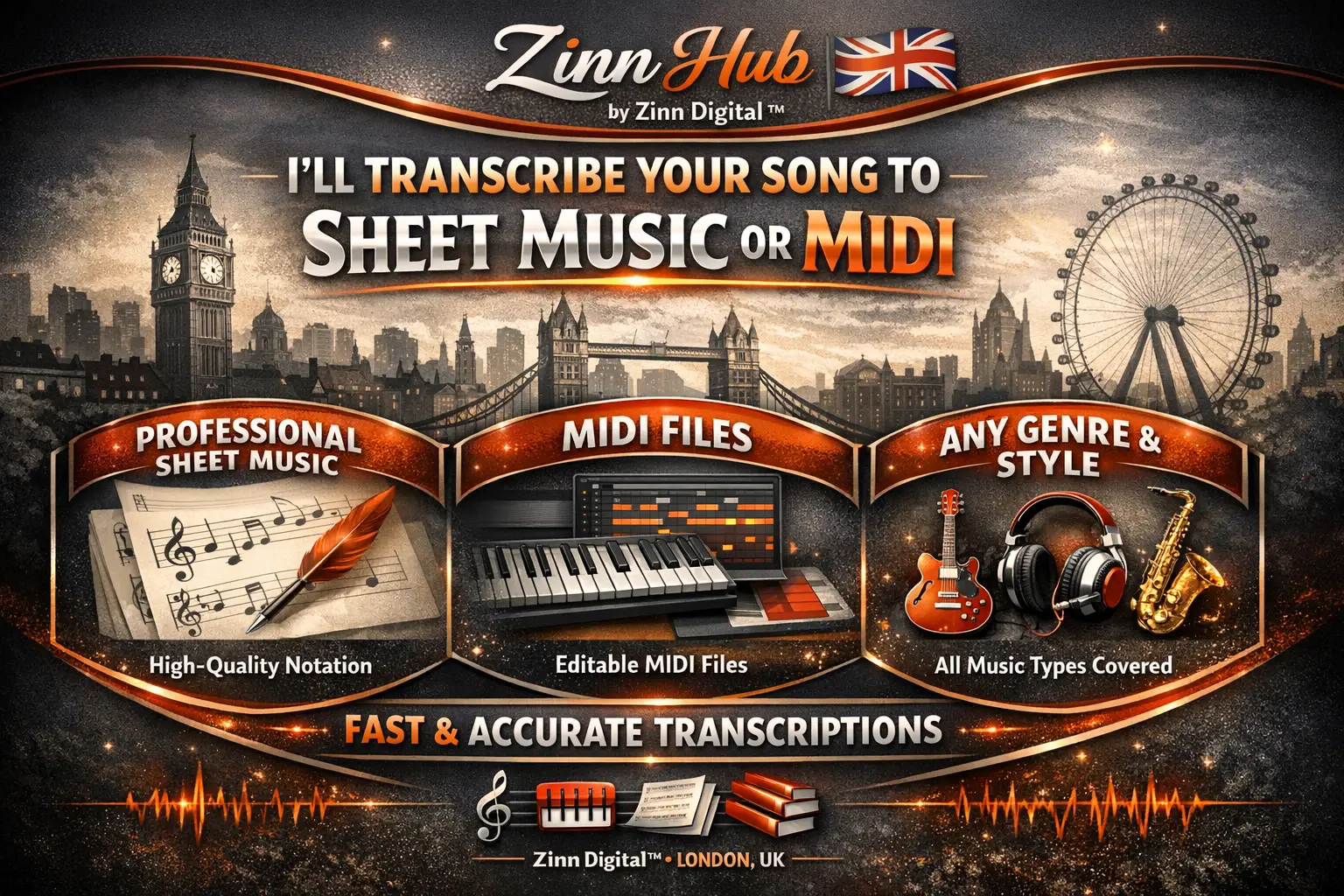 Hi, I'm Zinn Digital ™, a professional pianist, keyboardist, and music transcriber based in London, England, with extensive experience in creating high-quality transcriptions and arrangements across various styles and instruments. My goal is to provide you with precise and professional results that meet your needs and exceed your expectations.