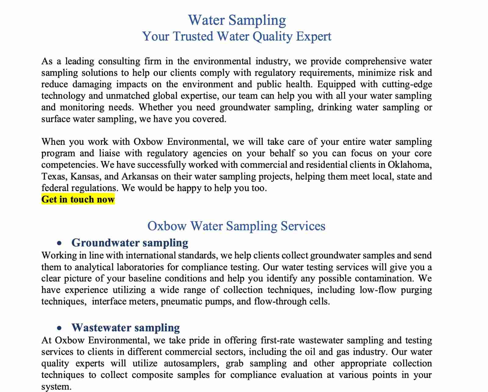 Oxbow Environmental - Website Content Project