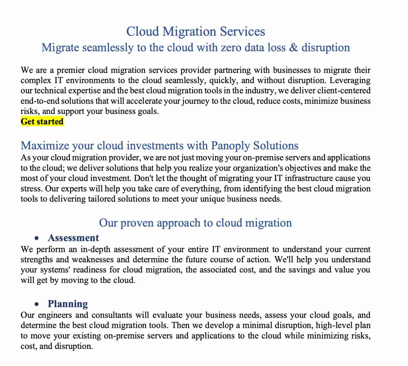 Panoply IT Solutions - Website Content Project