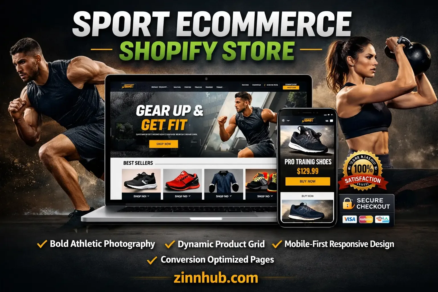 Full Shopify store build for a sports ecommerce brand with bold athletic photography, dynamic product grid, and mobile-first responsive design. Theme customised to match the brand's energetic visual identity, with conversion-focused product pages, clear calls-to-action, and trust signals integrated throughout the customer journey.