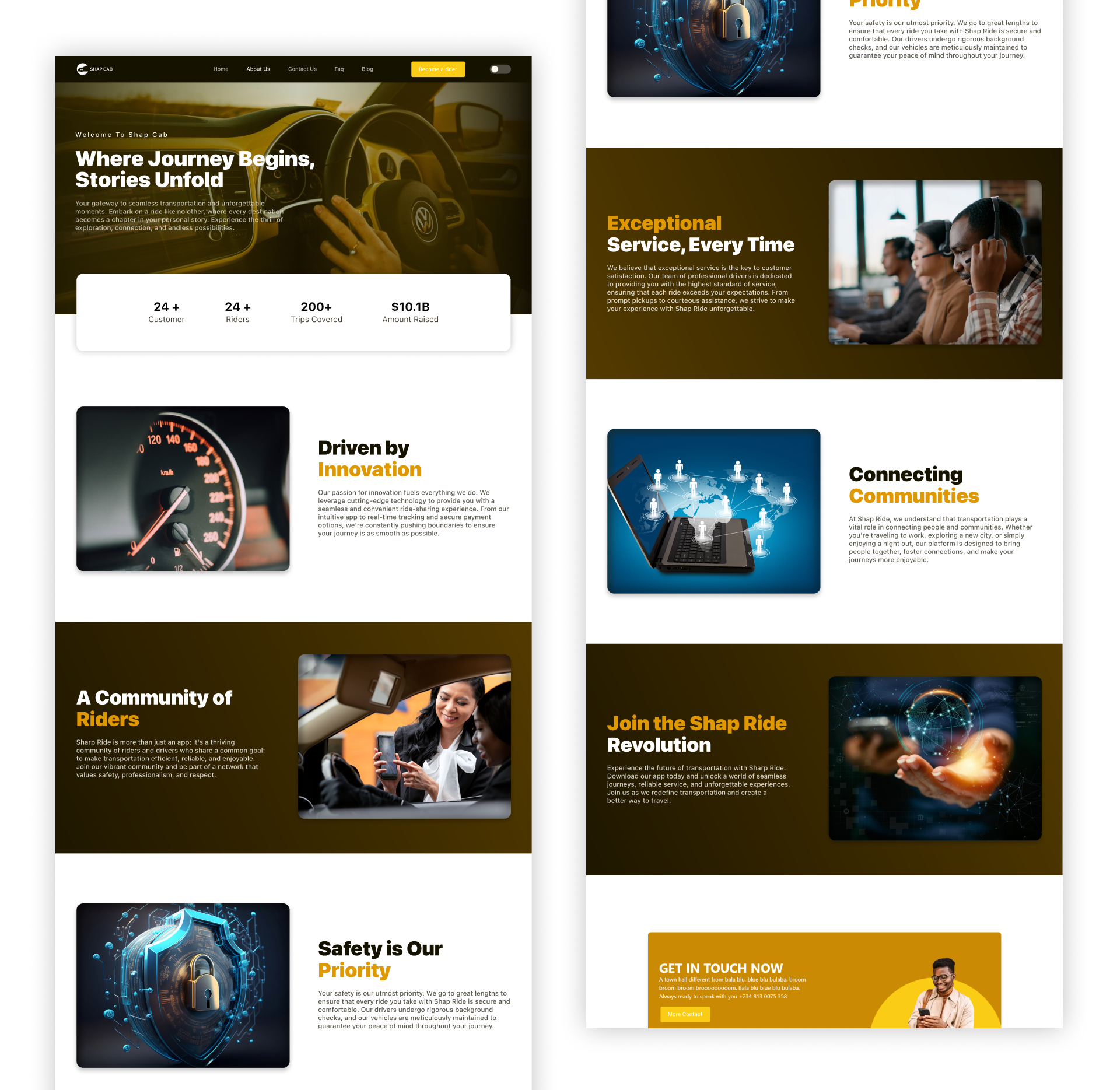 The Shap Cab website is a modern, responsive platform designed to promote the ride-hailing service, highlight core features, and provide a seamless experience for users to book rides, explore services, and get support.