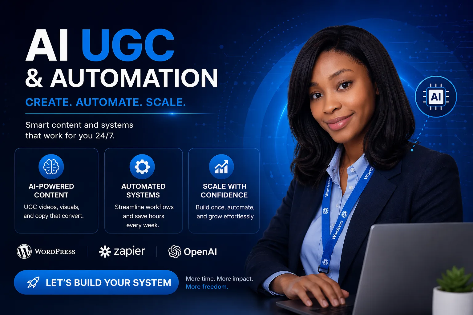 Unlike traditional content creation, which often requires hiring creators, filming setups, and ongoing coordination, my AI-driven workflow allows you to produce consistent, professional-quality videos quickly and efficiently—without sacrificing authenticity or effectiveness.
