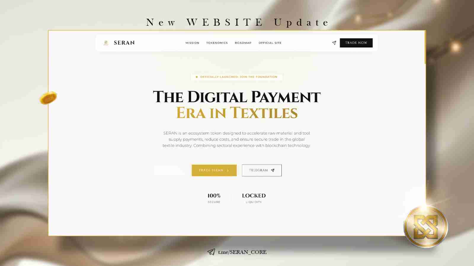 SERAN is an ecosystem token designed to accelerate raw material and tool supply payments, reduce costs, and ensure secure trade in the global textile industry. Combining sectoral experience with blockchain technology. I turn the whole project idea into cinematic visual experiences that people don’t just watch, but actually feel... Redesigned their WEBSITE... Did a cinematic trailer Video... and also created some Visual arts for social media posts