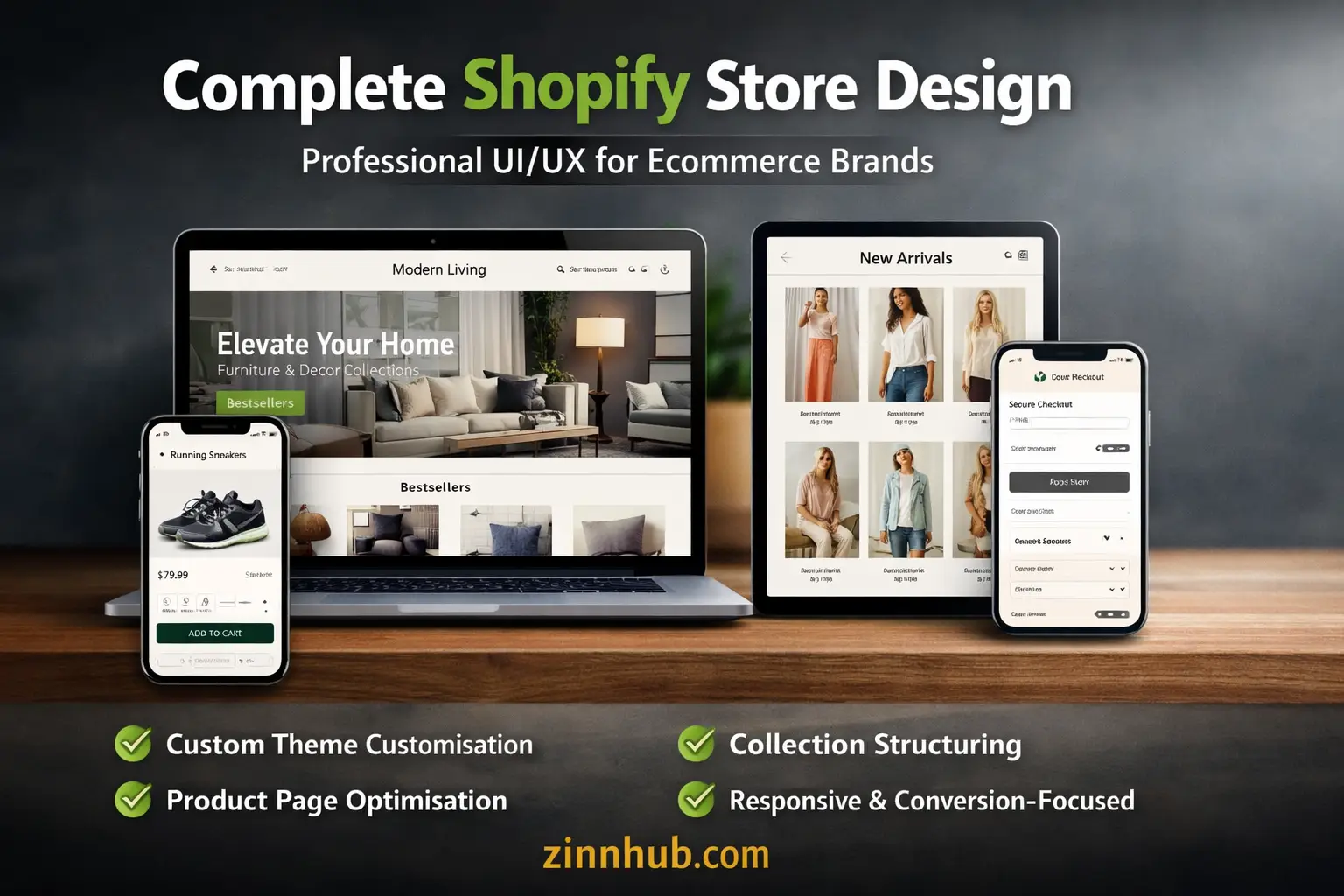 I'll design a high-converting Shopify store, landing page or ecommerce website with professional UI/UX — custom theme development, mobile-first responsive design, speed optimisation and conversion-focused structure. Top Rated on Zinner - 50+ projects delivered, 100% job success.